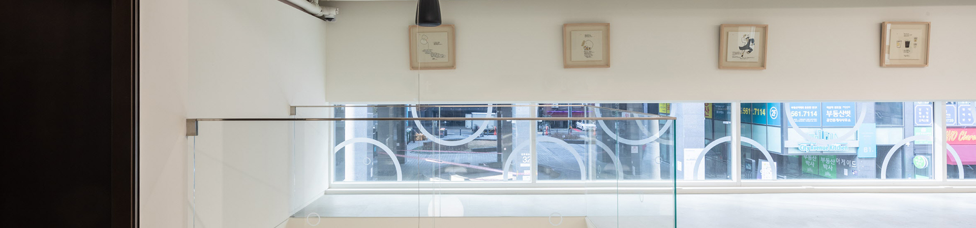 건물 앞 정원을 감상할 수 있는 2층에 위치한 라운지 &갤러리는 다양한 작품들을 전시하기 위한 아름다운 공간입니다.